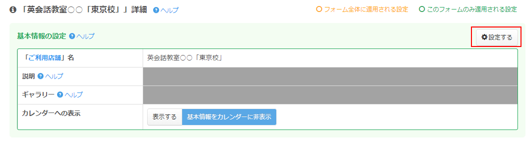 説明文やギャラリーを登録した場合は基本情報設定エリアのカレンダーへの表示を「表示する」をクリックします。