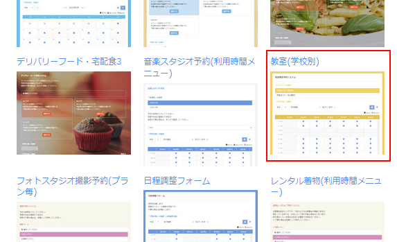 今回は「営業時間タイプ」のテンプレートの中から「教室(学校別)」のテンプレートを選びます。