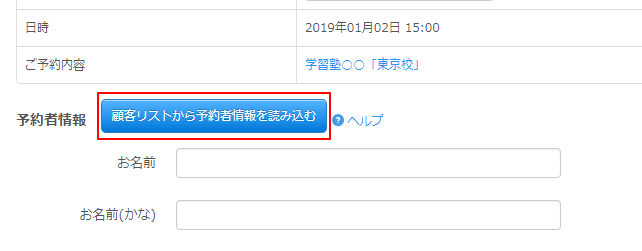 「顧客リストから予約者情報を読み込む」をクリックしすると