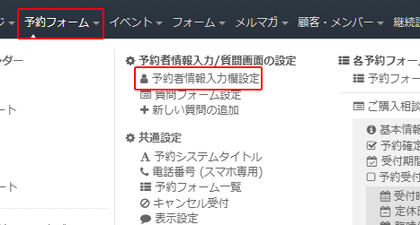 <予約者情報入力欄の設定>
