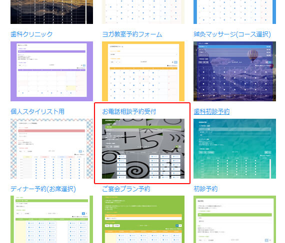 今回は「営業時間タイプ」のテンプレートの中から「お電話相談予約受付」のテンプレートを選びます。