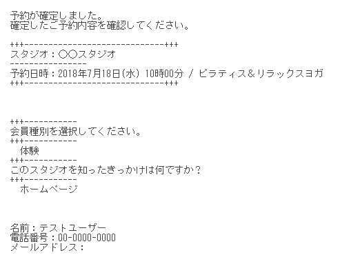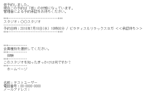 承認制の場合には、「予約控えメール」が届きます。