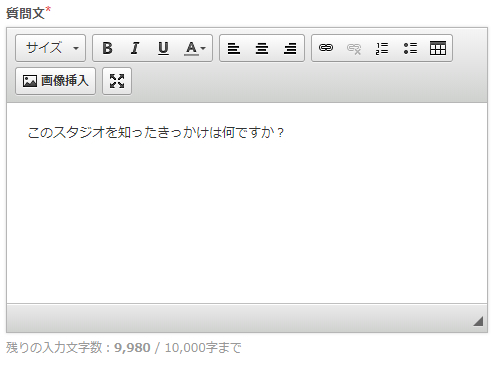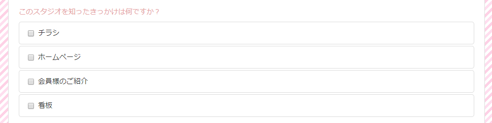 質問文に「このスタジオを知ったきっかけは何ですか?」などを登録します。