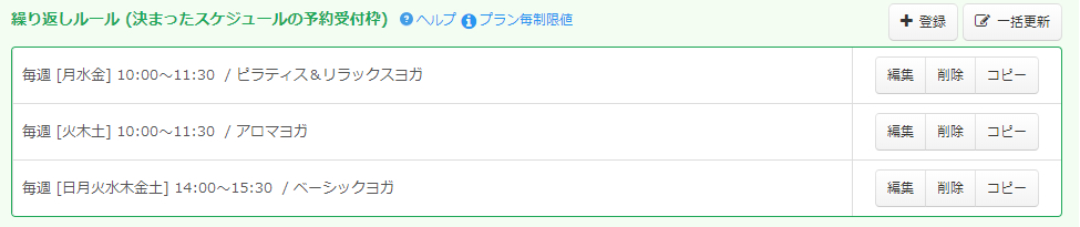 このような、ヨガ教室でよく使われている機能を中心に設定方法をご案内していきます。