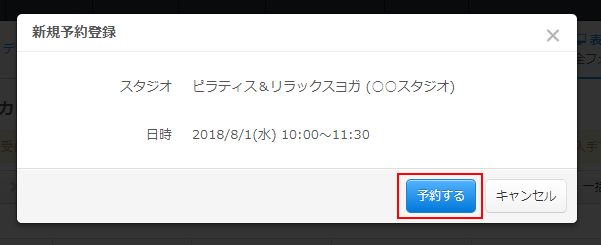 代行登録する対象の日時などが間違っていないか確認し、問題なければ「予約する」ボタンをクリックします。