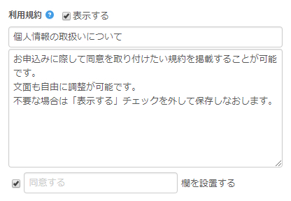注意書きの設定は、作成した予約フォーム全てに同じ内容を記載する事もできますし、