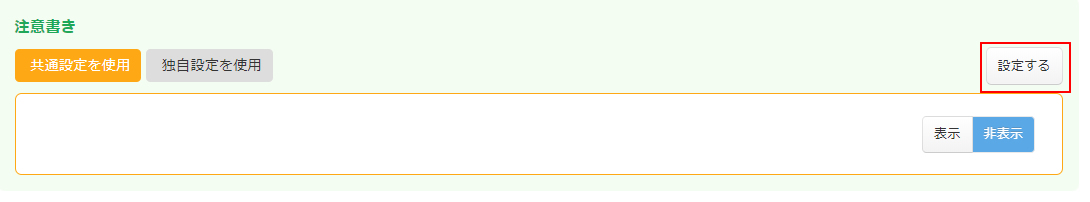 注意書き設定エリアの「設定する」ボタンから設定フォームを表示させます。