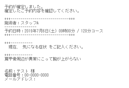 確定されると予約者には控えメール、管理者には通知メールが届きます。