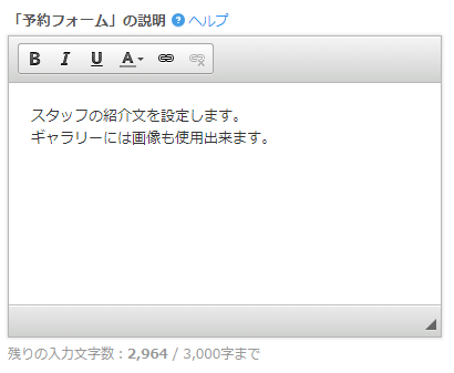 「予約フォームの説明」には担当者の紹介文を登録します。