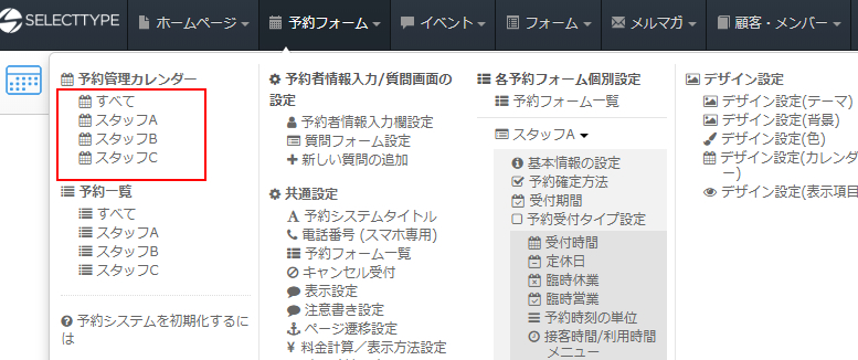 SELECTTYPEの予約システムでは他にも便利な機能がたくさんございます。