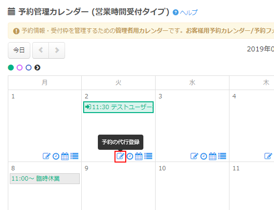 予約管理用のカレンダーが表示されます。