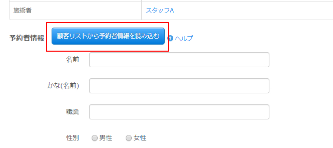 「顧客リストから予約者情報を読み込む」をクリックすると