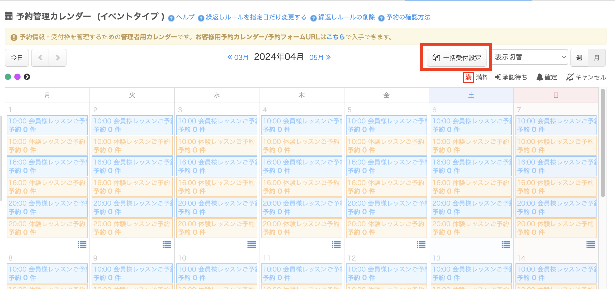 イベントタイプ予約フォームの受付枠の受付状態を一括で設定する