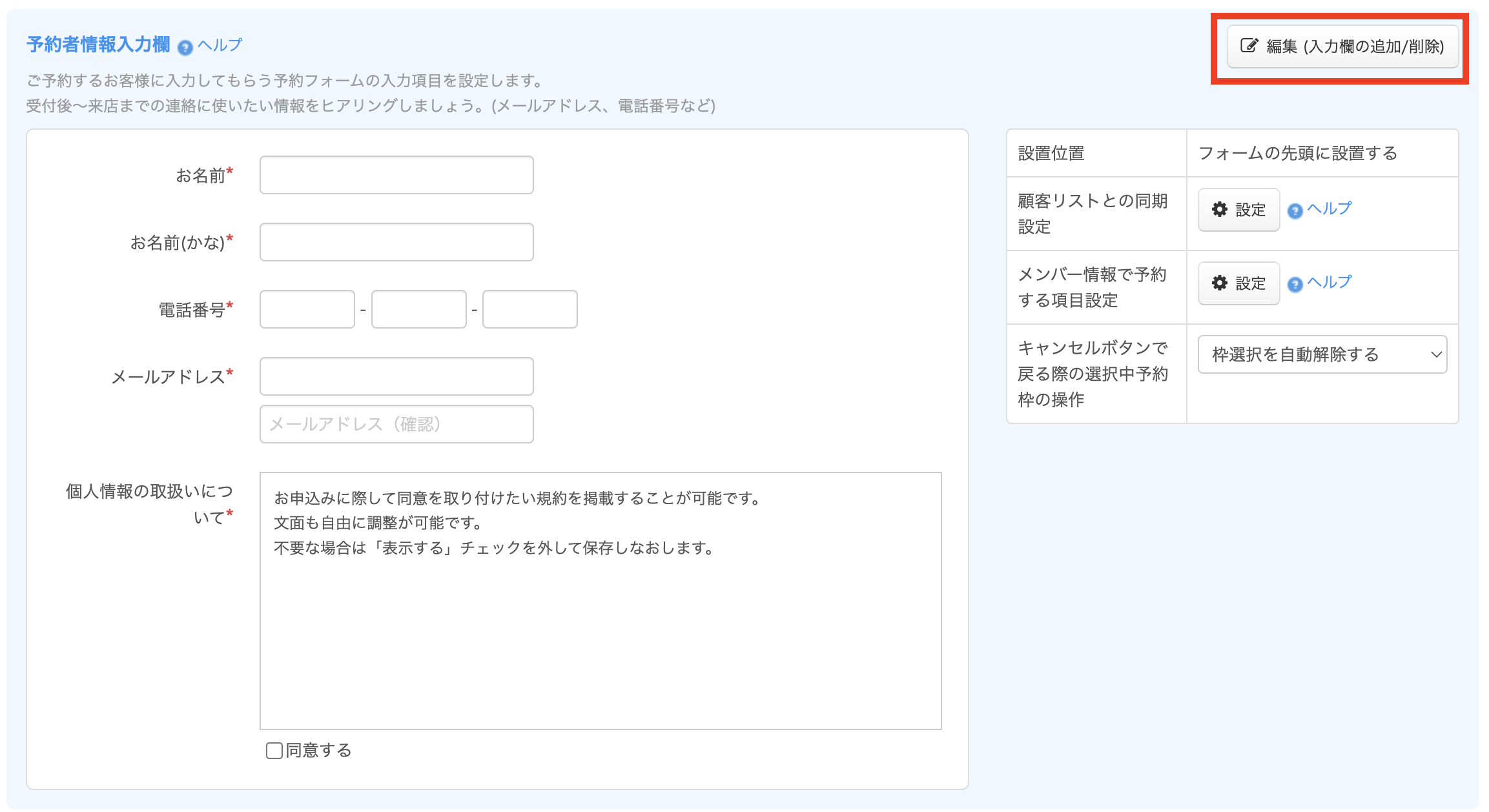 [予約フォーム] 予約受付時に何を聞くか設定する / 個人情報入力欄