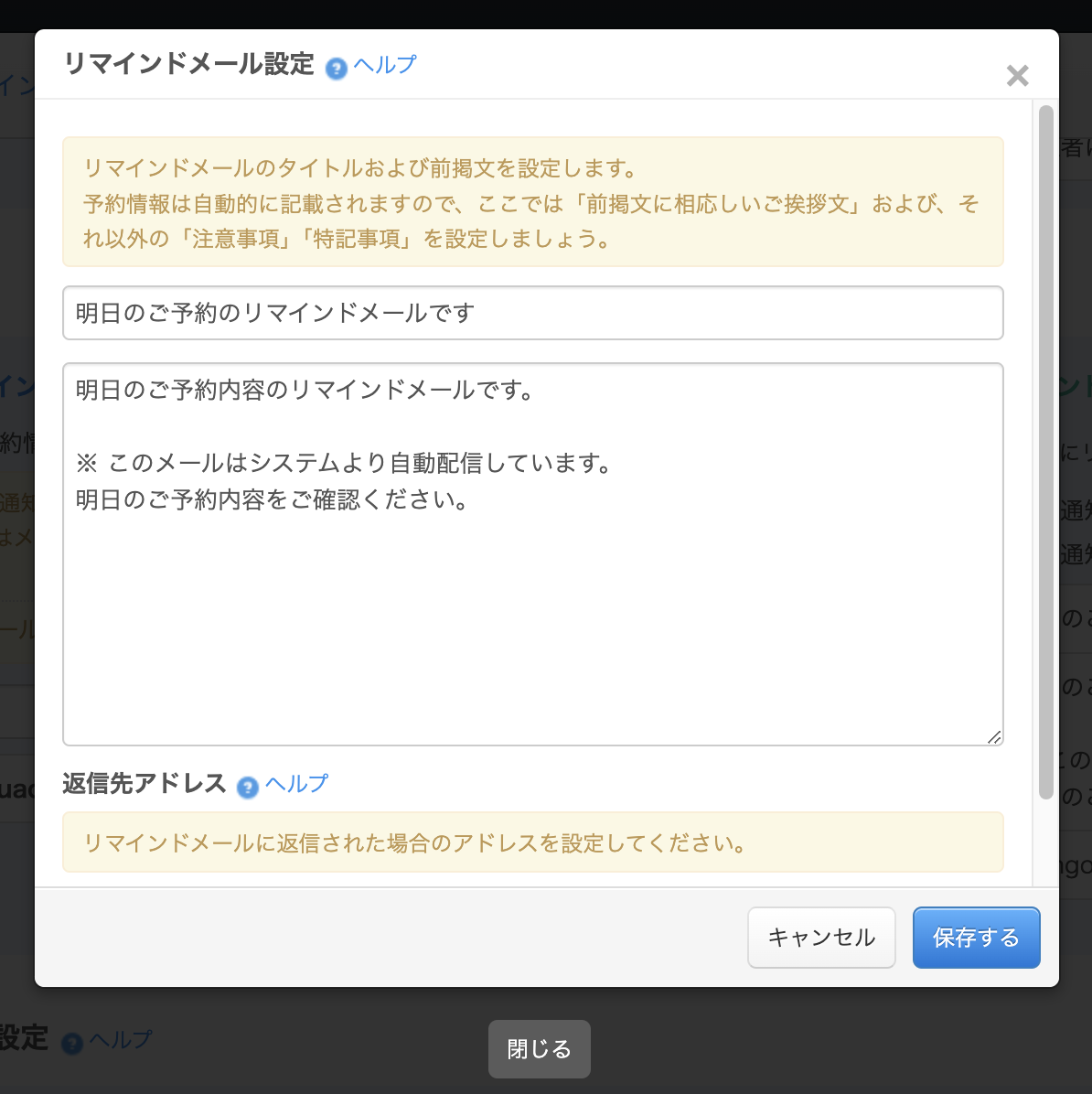 設定画面にて、お客様宛のリマインドメールの内容を変更できます。