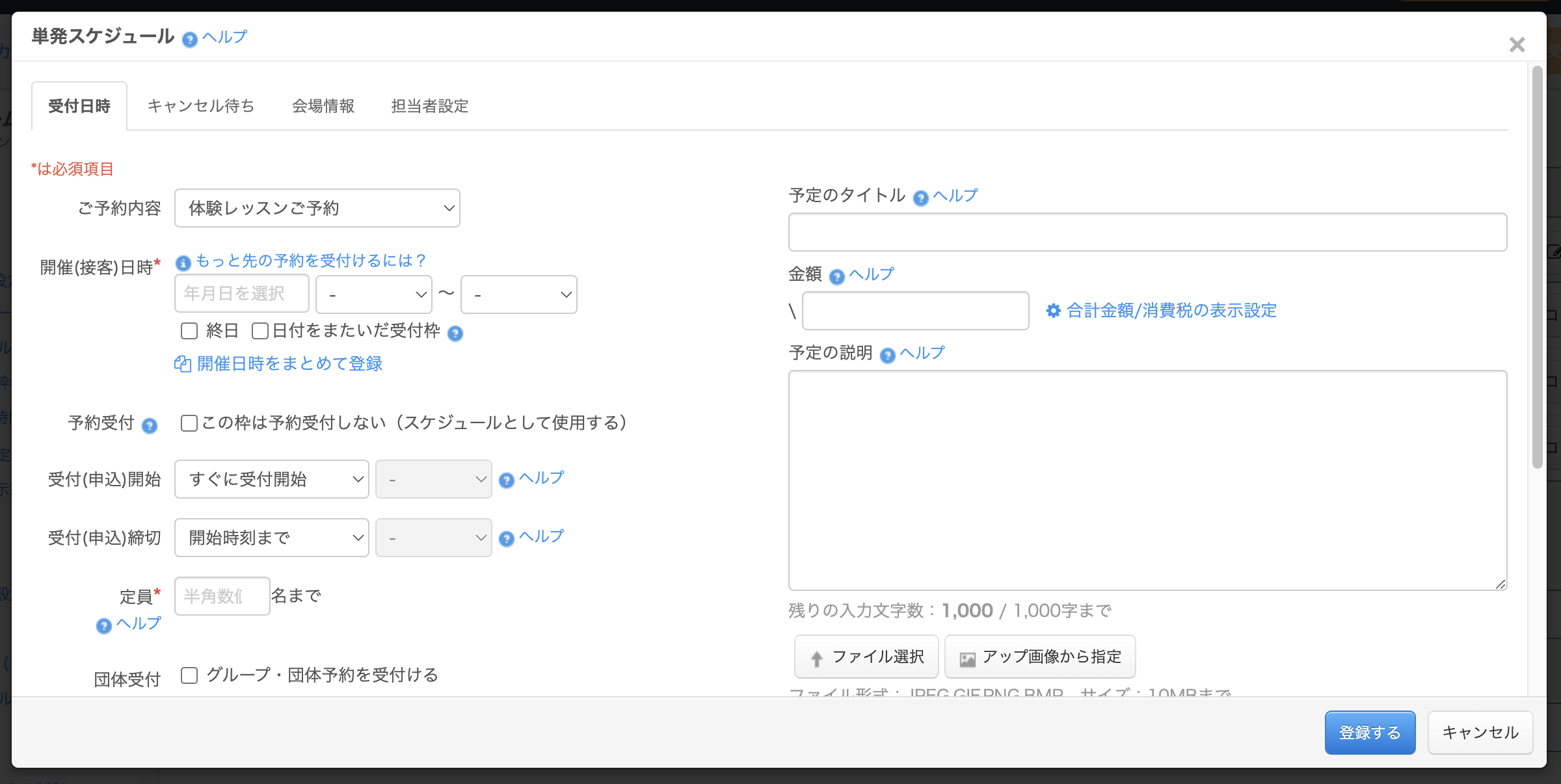 その日時限りの予約受付枠を作る / イベント受付タイプの「単発スケジュール」