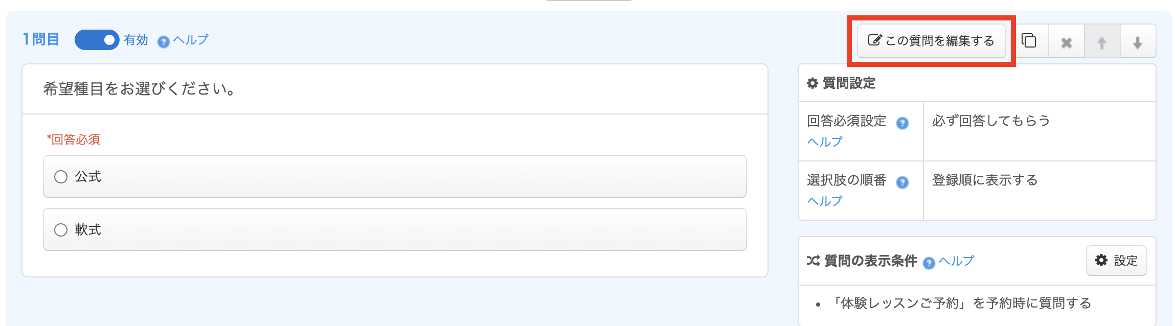 「この質問を編集する」をクリックすると、質問フォームに掲載されている質問文を変更