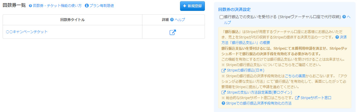 (1).Stripeアカウントを登録・連携して決済機能を使用できる状態にします。→回数券を販売できるように
