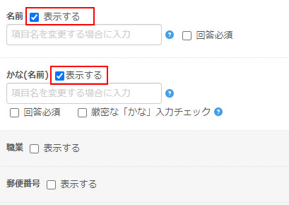 メンバーページへ表示したいフォームの「表示する」ボタンをクリックします。