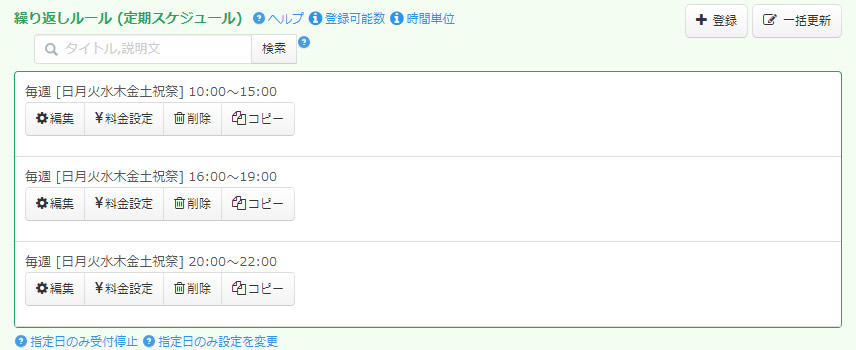 繰返しルールで定期的な繰返し受付枠を作成する