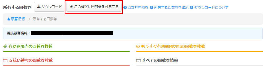 「この顧客に回数券を付与する」をクリックします。