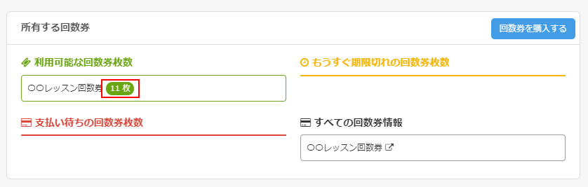 管理者から付与された回数券などもここから購入した回数券か付与された回数券かを確認することも出来ます。