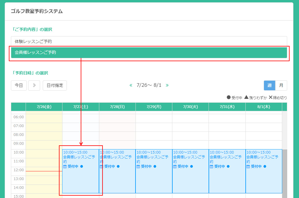 会員様レッスンはゴルフ教室メンバーのみがログイン後にご予約出来るようにメンバー限定の設定になっています。