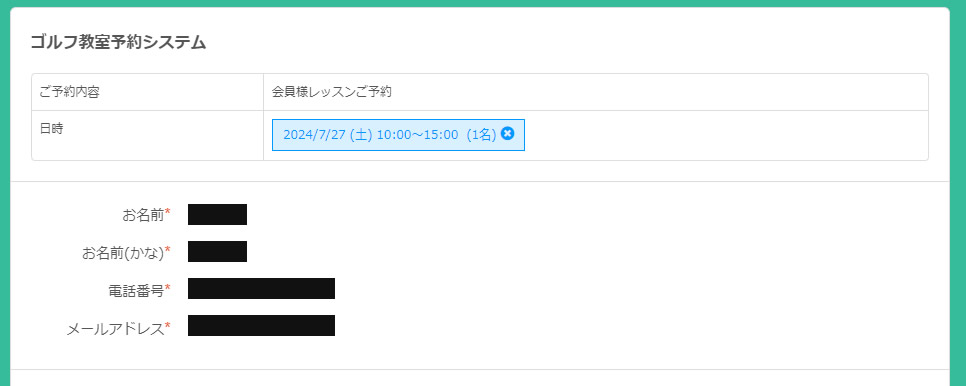 今回使用するテンプレートはイベントタイプで予約受付をセッティングしたゴルフ教室向けの予約フォームです。