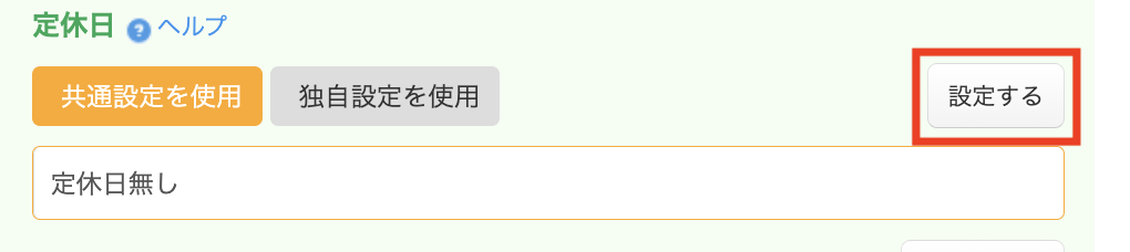 定休日欄の「設定する」をクリックすると、設定画面が表示されます。