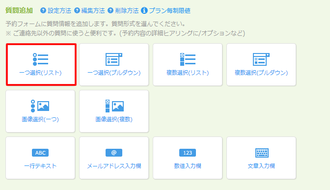 質問フォーム設定エリアより質問を登録します。