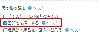 回答しないと予約を進めないようにするには「回答を必須にする」のチェックをいれます。
