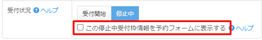 「この停止中受付枠情報を予約フォームに表示する」にチェックをいれます。