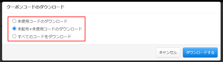 ダウンロードできる情報は「未使用のコード」「未配布+未使用のコード」「すべてのコード」から選べます。