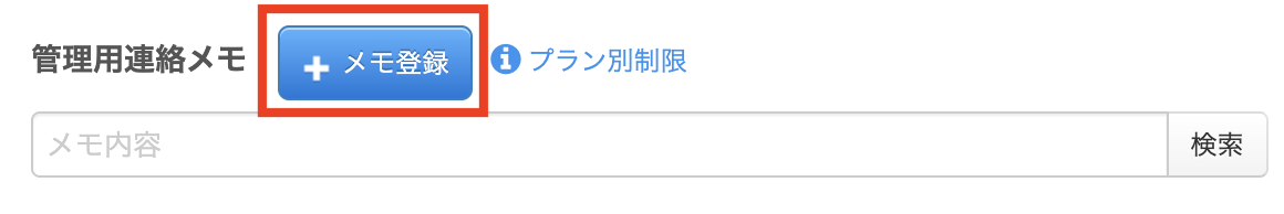 管理用連絡メモ欄に表示される「+メモ登録」のボタンをクリックします。