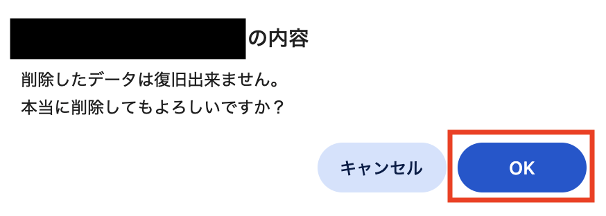 確認メッセージが表示され、「OK」をクリックするとメモが削除されます。