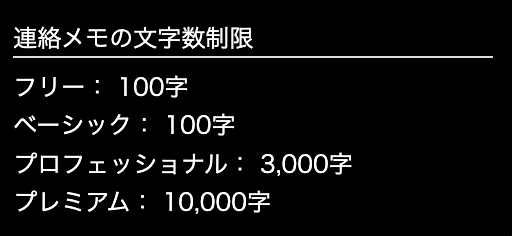 ご利用中のプランごとに、1件あたりのメモの文字数に上限があります。