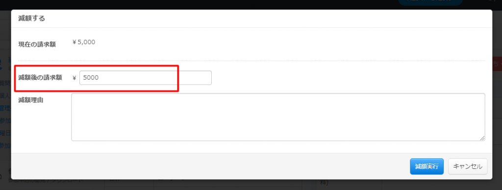 請求金額の入力をしたら「減額実行」ボタンをクリックします。
