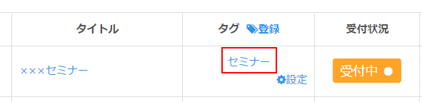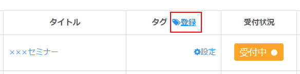 イベント一覧のタグ欄にある「登録」をクリックします。