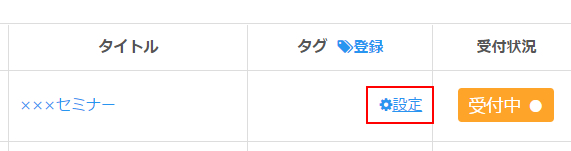 イベント一覧より紐づけ設定をするイベントのタグ入力欄にある「設定」をクリックします。