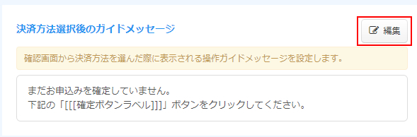 決済方法選択後のガイドメッセージの「編集」ボタンをクリックします。