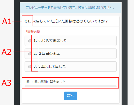 事前に登録した質問内容が反映されていますので、最終的な仕上がりを公開前に確認できます。