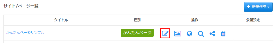 目的の「かんたんページ」の「編集」アイコンをクリックします。