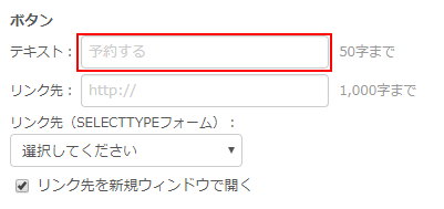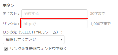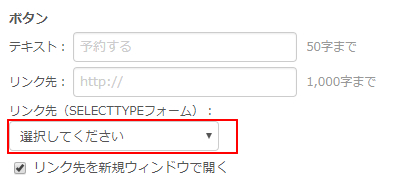 「リンク先(SELECTTYPEフォーム)」にはSELECTTYPEで作成された予約フォームやメールフォームなどをリンク先にする場合に指定します。