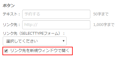 「リンク先を新しいウィンドウで開く」は選択するとボタンをクリックした時に別画面で表示されるようになります。