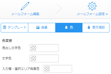 フォームのデザイン設定画面が表示されますので、デザイン設定メニューの「色」メニューをクリックします。