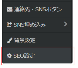 サイトの編集画面の左側にある「編集ツール」より「SEO設定」をクリックします。