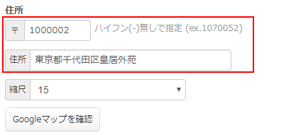 ここで入力された住所情報がピン位置に表示される吹き出しに表示されるようになります。