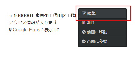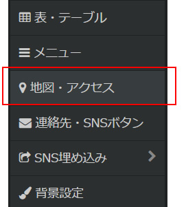 サイトの編集画面の左側にある「編集ツール」より「地図・アクセス」をクリックします。