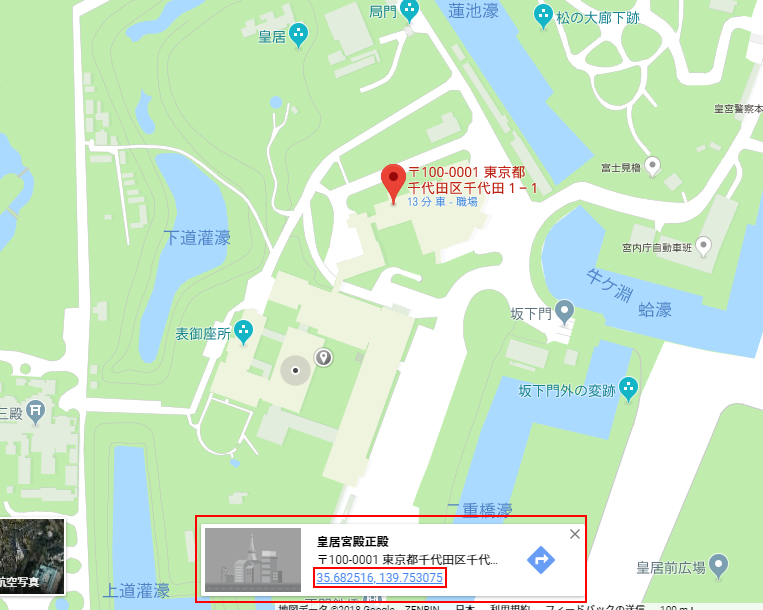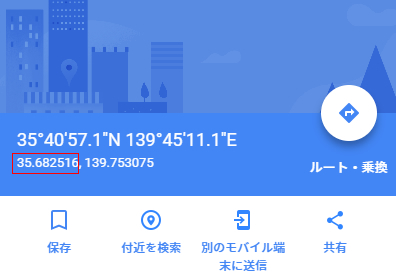 画面下部のカードに座標が表示されますので、座標をクリックします。