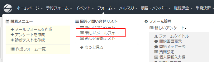 ログインしたらページ上部ヘッダーより「フォーム」→「回答/問い合せリストの該当フォームタイトル」をクリックします。